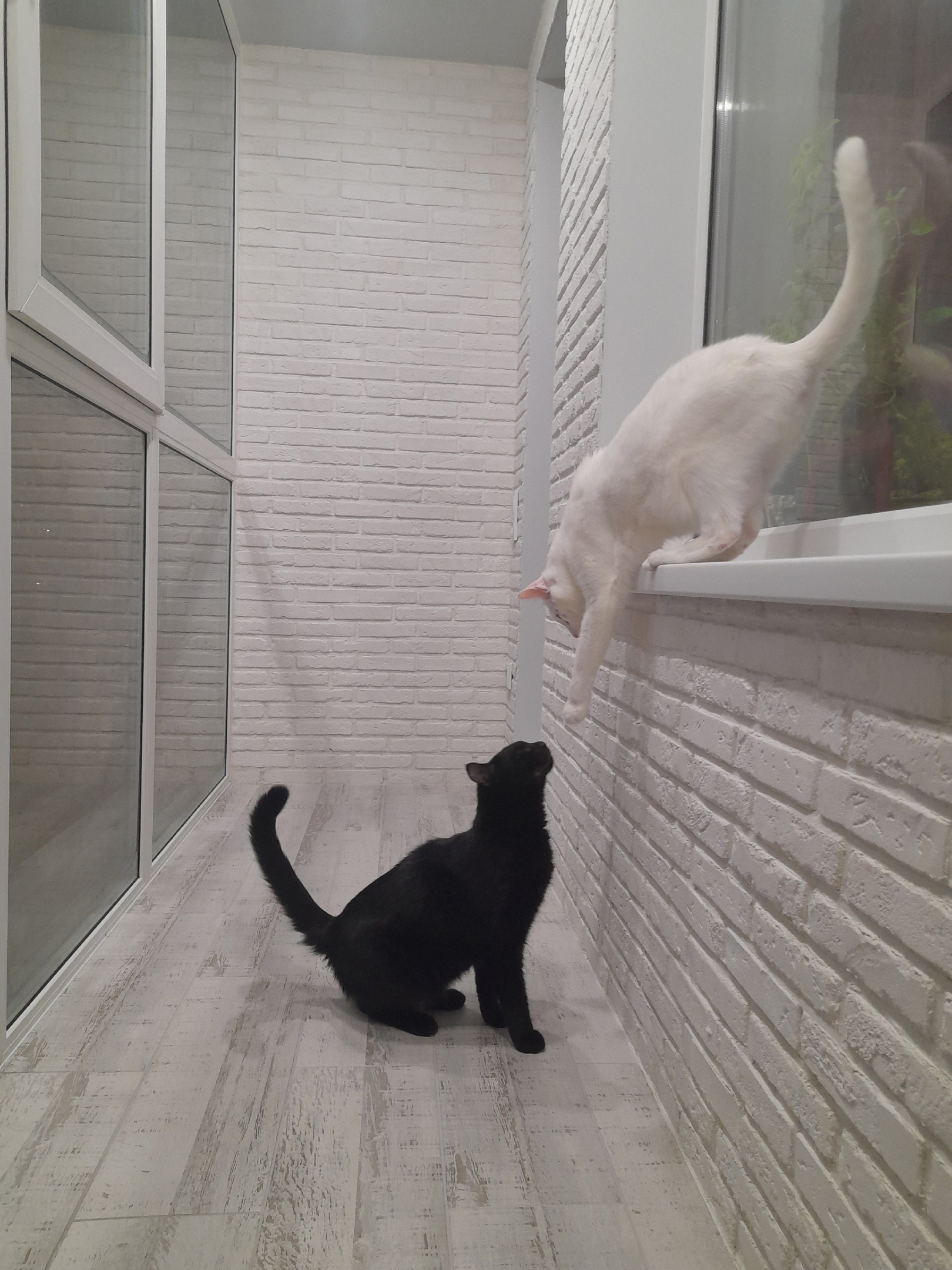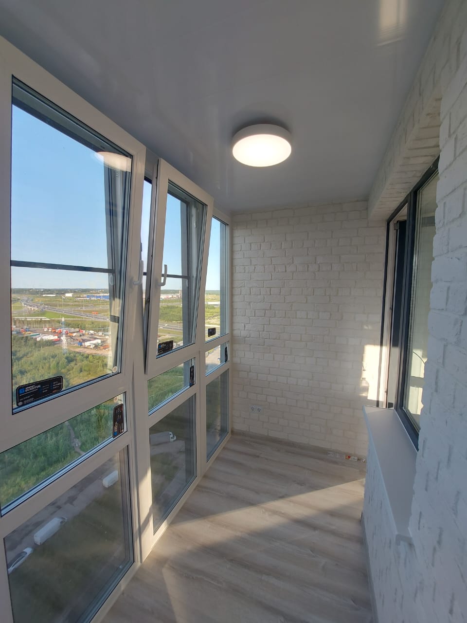 Светлый балкон с подоконником